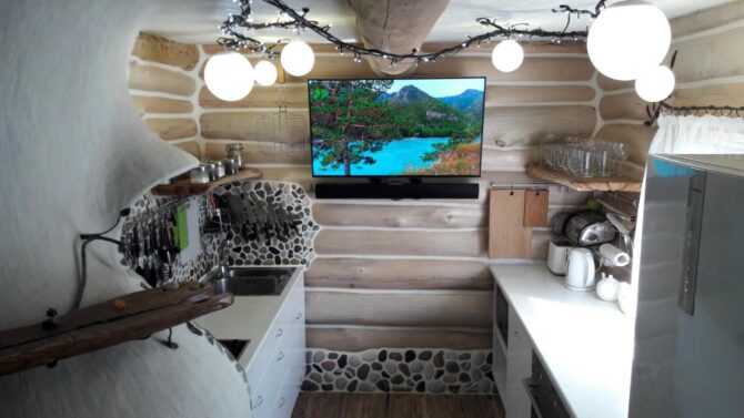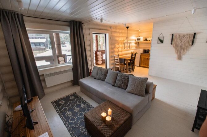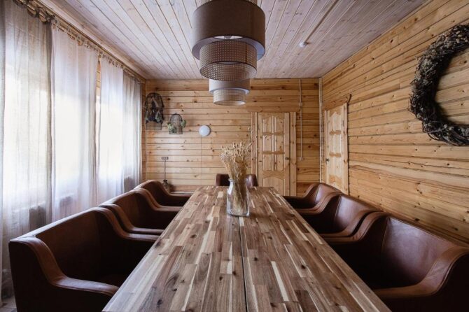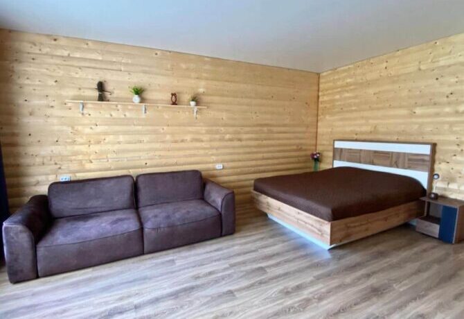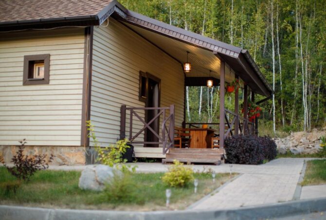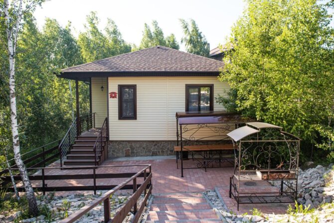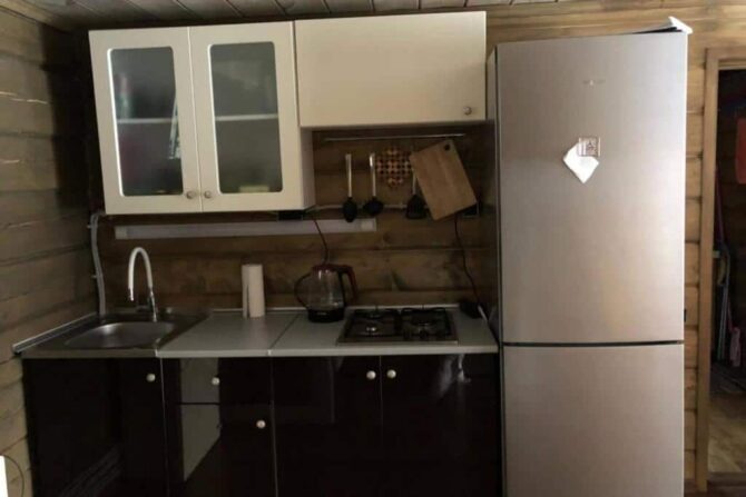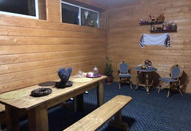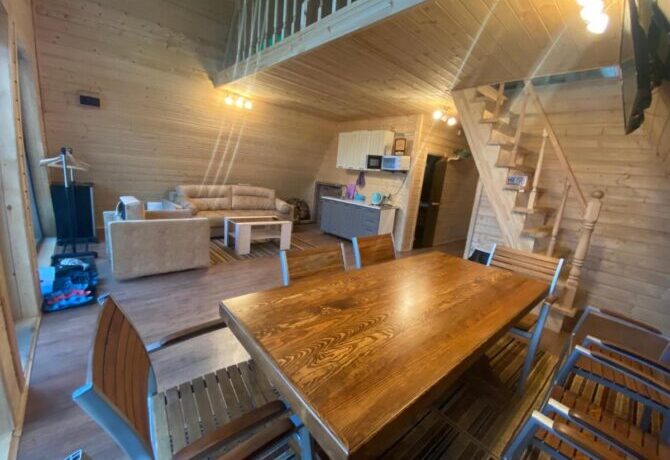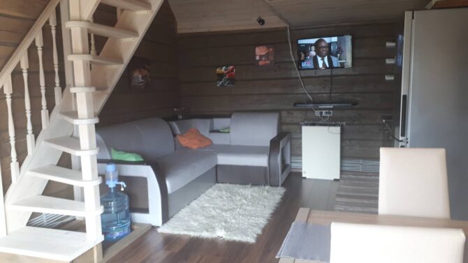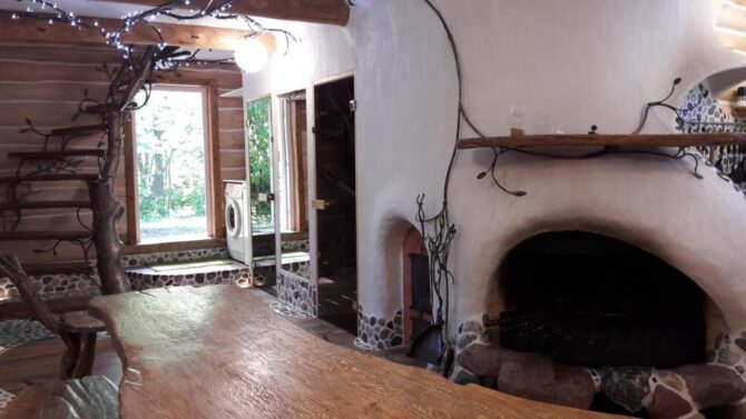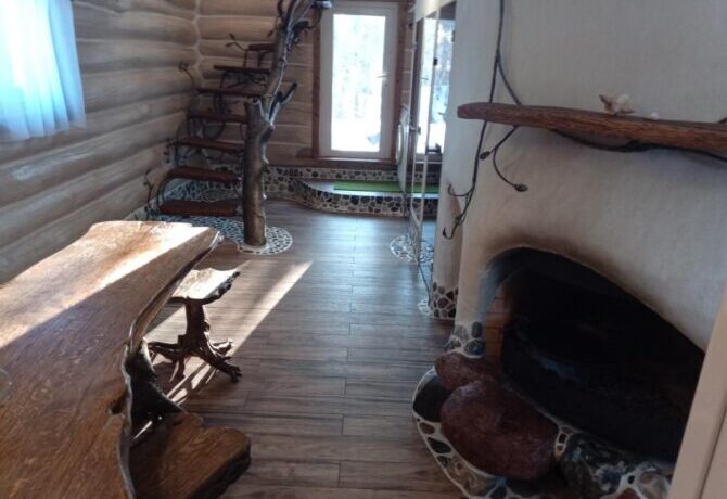 Стоимость – от 12 тыс. р. за двое суток. Бронирование на один день не предусмотрено. Дом оборудован просторной баней, кухней, спальней, ванной с душем и гостиной. Гости могут пользоваться камином, мангалом, посудой и электрическими приборами. Для отдыхающих доступен высокоскоростной интернет и спутниковое телевидение. Гости организуют питание самостоятельно, заранее запасаясь продуктами. Зимой можно совершать лыжные прогулки по близлежащим окрестностям. При необходимости хозяева дома-бани помогут в решении возникающих проблем.