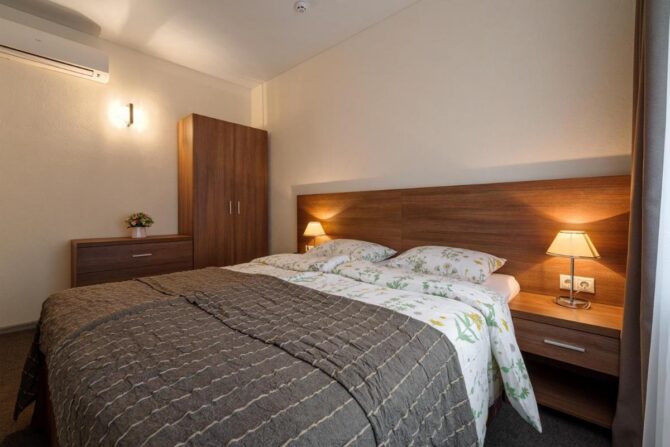 - велнесс- и спа-комплекс с массажными кабинетами, фитобочкой, подогреваемым бассейном (ширина – 8 м, длина – 25 м, глубина – 2 м), сауной и тренажерным залом.