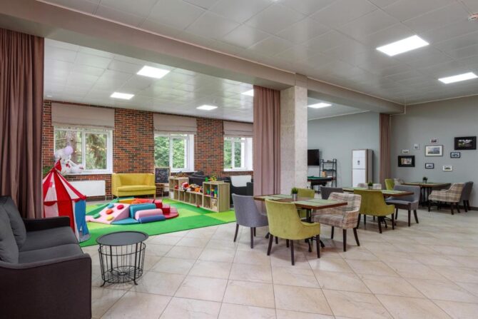 - развлекательный центр с тремя комнатами: детской и для игр в настольный теннис и бильярд;