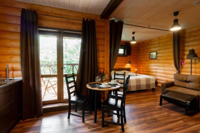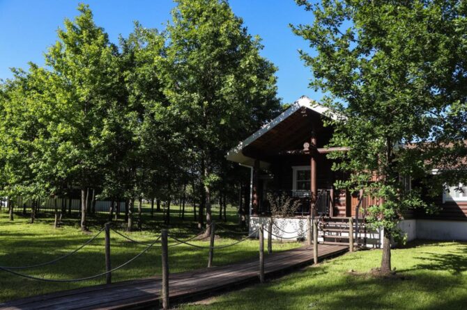 Just Wood предлагает гостям проживание в 10 деревянных срубах и 20 благоустроенных коттеджах. В некоторых из домов оборудованы небольшая сауна и просторная кухня, укомплектованная посудой и электроприборами. Стоимость проживания в коттеджах – 4,6–12,5 тыс. р. за одну ночь, в срубах – 6,4–16,3 тыс. р. На территории загородного отеля оборудовано несколько объектов, разнообразящих досуг гостей: