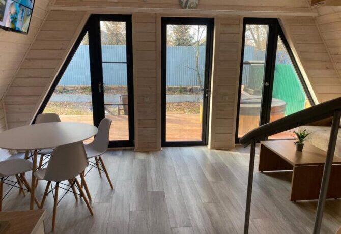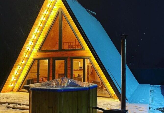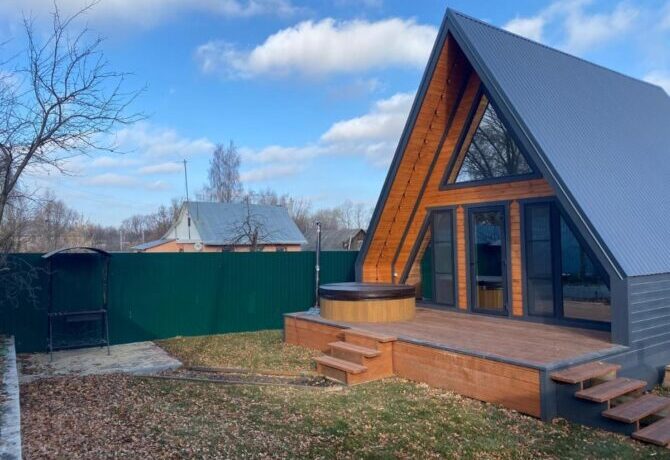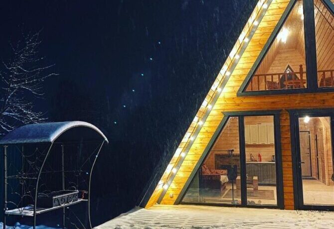 Для туристов, мечтающих отметить новогодний праздник в семейном кругу или в тесной компании друзей, идеальным местом станет A-Frame – уютный дом для отпуска, расположенный на северо-западе города Донской, в 65,1 км к юго-востоку от центра Тулы. A-Frame представляет собой гостиницу, состоящую из двух А-образных каркасных коттеджей из дерева. В каждом из них может проживать от 6 до 7 человек.