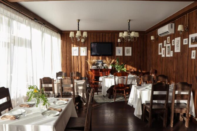 Завтраки для гостей базы отдыха подаются в SheLESt («Шелест») – ресторане, отмеченном престижными наградами. В интерьере просторного зала преобладают светлые оттенки. Большие панорамные окна, из которых виден лес, расширяют пространство помещения. Меню ресторана богато разнообразными русскими и европейскими блюдами.