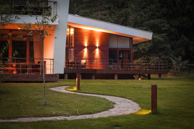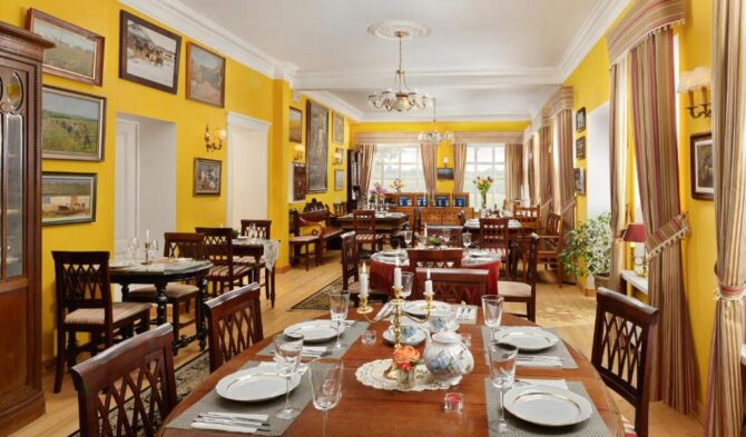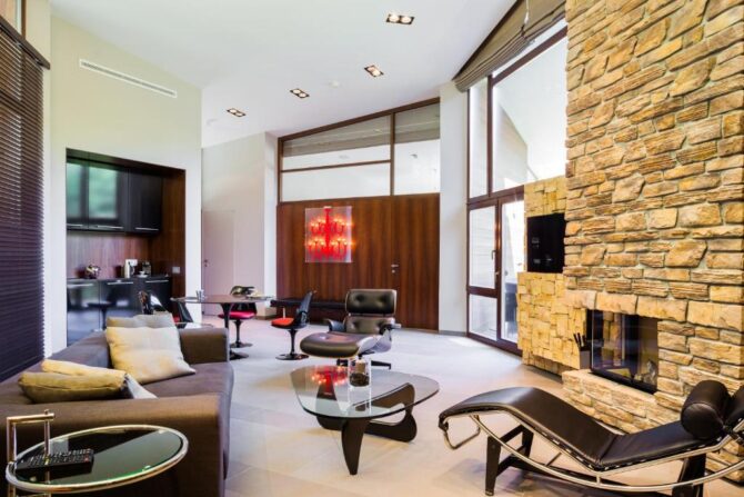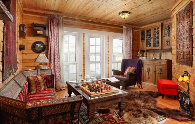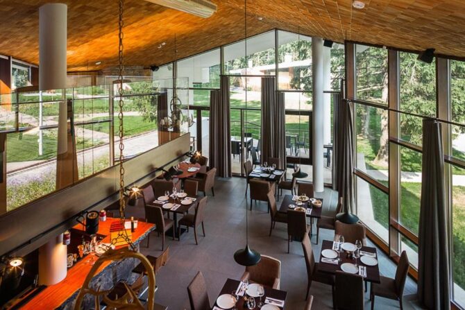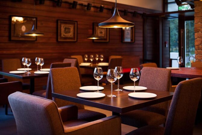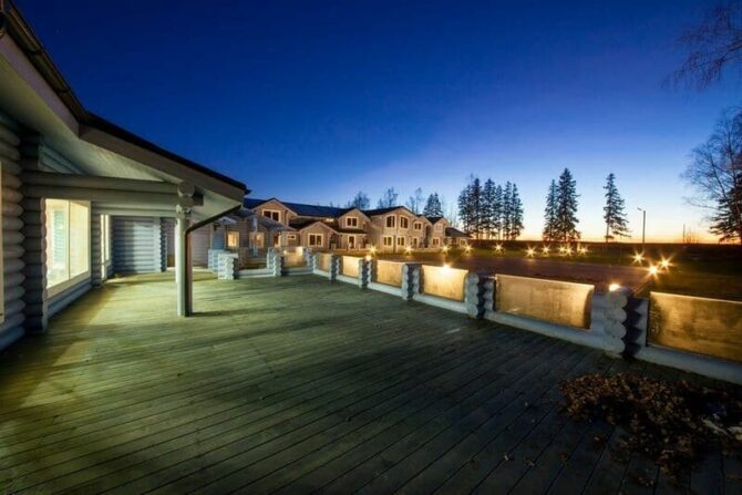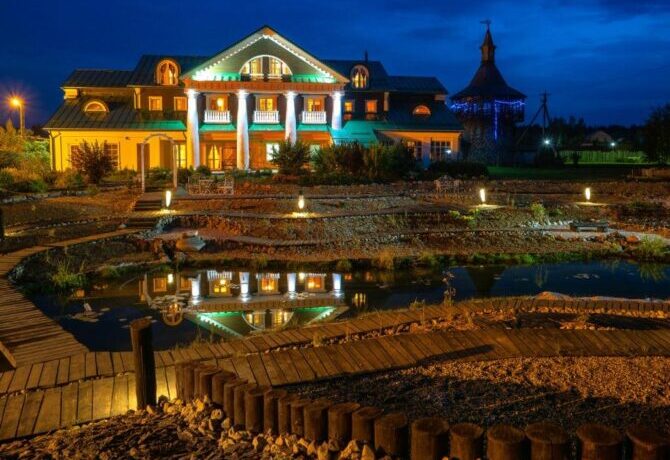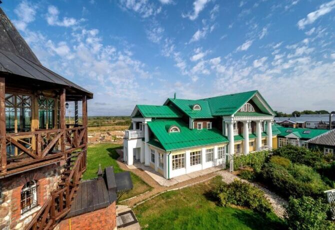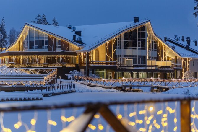 Частная усадьба класса Люкс предлагает эксклюзивные условия для проживания во время новогодних каникул. Здесь гарантированы тишина и покой, что очень важно после активного дня, проведенного на свежем воздухе или развлекательных центрах. Все коттеджи оформлены в современных стилях – хай-тек, лофт и альпийское шале. В домах предусмотрены все удобства, кухня и панорамное остекление гостиной. Ресторан больше напоминает английский джентльменский клуб с камином по центру. Шикарная обстановка дополняется великолепными блюдами европейской кухни. СПА и фитнес-клуб расположены в отдельном здании. Летом работает открытый бассейн, зимой гости расслабляются в просторной джакузи. Каждый вечер в ресторане проводятся музыкальные концерты.