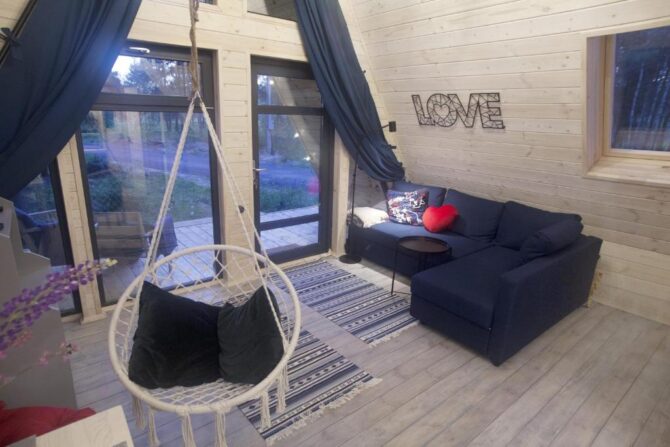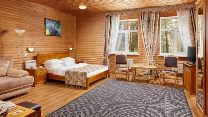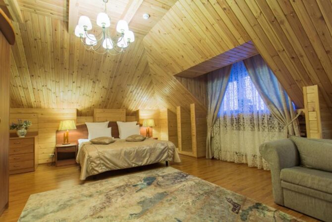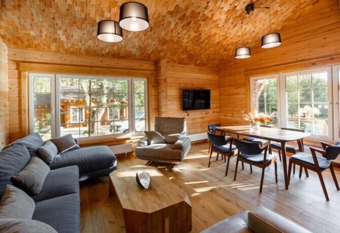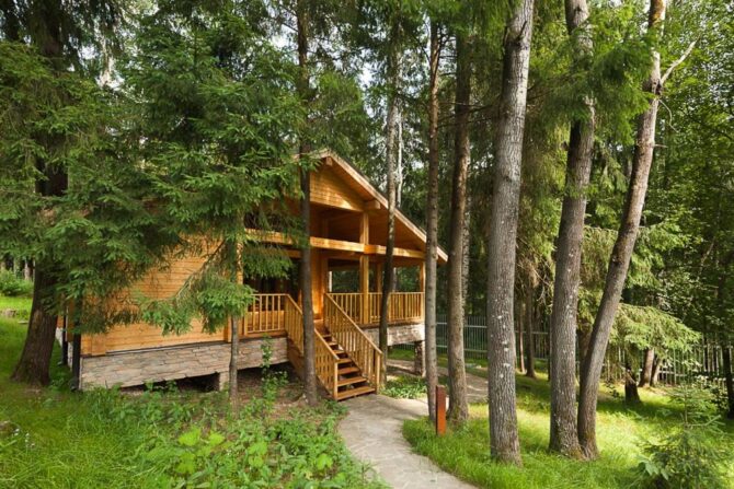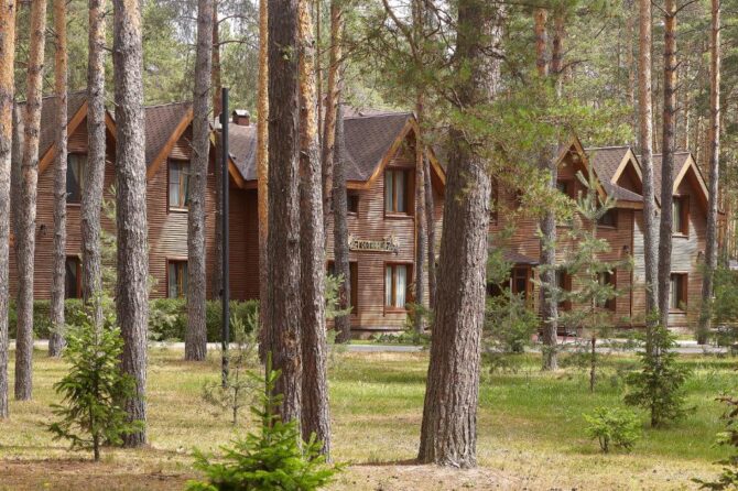 Комплекс деревянных шале расположен в районе Лесных озер. Комфортабельные домики построены по спецпроекту. В них компактно размещены гостиная и спальная зоны, ванная комната, кухонный уголок. Помещение оборудовано современной бытовой техникой. У клубного поселка имеется своя инфраструктура. К ней относятся: бани, ферма с домашними животными, ресторан, прокат спортивного снаряжения, охрана, парковка. Возле двухкомнатных домиков на 4-8 человек обустроены мангальные зоны. Рядом находится крупная база отдыха Busel. На ее территории можно посетить СПА, кафе, покататься на лошадях, спеть в караоке, провести вечерок за кальяном.