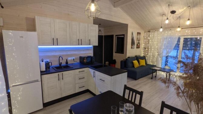Загородные апартаменты с двумя спальнями находятся в деревне Улыбишево. Это просторный дом, оформленный в классическом стиле. Для приготовления пищи предусмотрена общая кухня и зона барбекю. Владельцы готовы предоставить любой спортивный инвентарь по предварительному запросу. Здесь можно встретить Новый год в кругу семьи или друзей. Никто не помешает хорошо отдохнуть, запустить фейерверк, гулять до рассвета. Ресепшн работает круглосуточно, поэтому все возникающие вопросы решаются в самый кратчайший срок. Русская баня топится под заказ. В оплату входит 3 часа парной, веник, чай, банные принадлежности (простыня, полотенце).