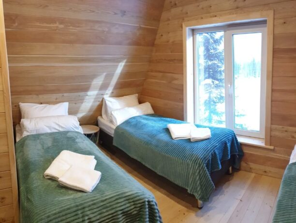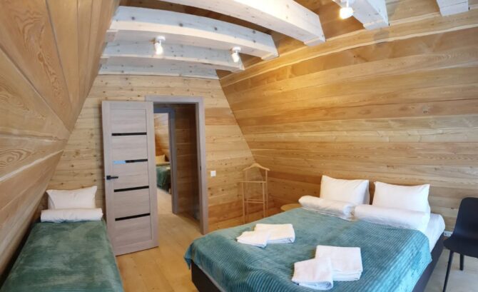 - четыре спальни (в первой — двуспальная кровать + 1 односпальная, во второй — двуспальная кровать, в третьей — 2 односпальные кровати; в четвертой — 2 двухъярусные кровати):