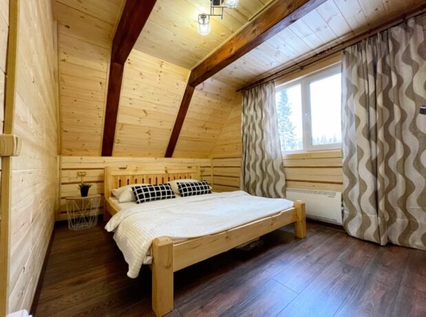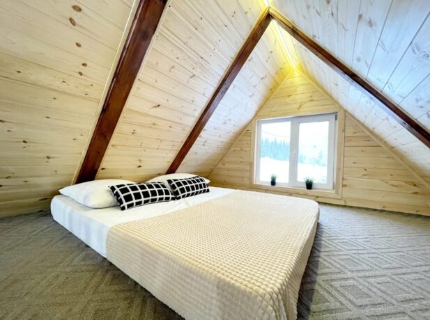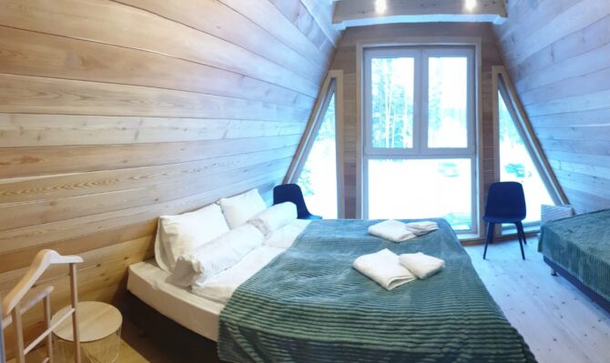 Если вы хотите провести выходные с друзьями или семьей, этот дом достаточно велик, чтобы вместить до 8 человек. Отдых в таком доме А-образного типа понравится всем любителям природы. Также дом имеет отличное расположение среди деревьев и находится недалеко от склонов.
