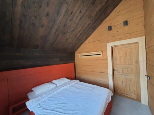 В шале также есть 5 спален с двуспальными кроватями и одна туалетная комната с душевой кабинкой.