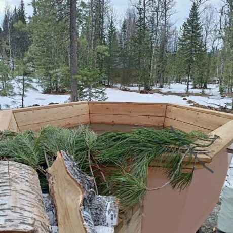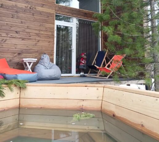 Дом с баней на террасе расположен в тихом месте, в окружении хвойного леса. Обратите внимание, в стоимость входит ежедневное использование банного чана.