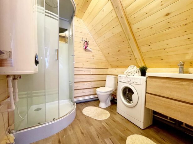 - Ванная комната: туалет, душ, умывальник, водонагреватель, стиральная машина, фен.