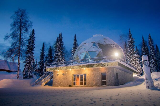 Эти лучшие дома в Шерегеше в форме куполов построены исключительно из эксклюзивных и экологически чистых материалов. Дома оснащены современными удобствами. Здесь один этаж и четыре просторных спальни, современные ванные комнаты, гостиная и кухня с необходимой техникой.