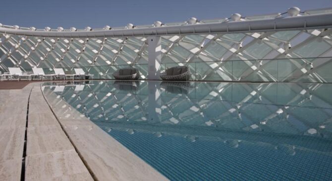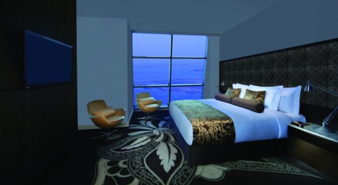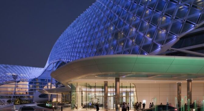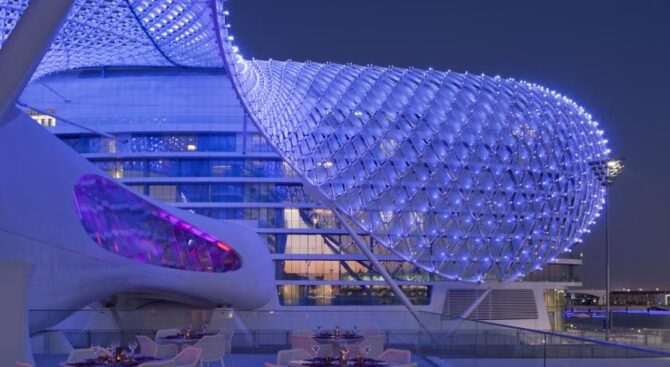 Отель с необычной архитектурой, расположенный на острове Яс. Часть здания и комплекса находится на воде, что позволяет чувствовать себя по-особенному, находясь на отдыхе в Yas Viceroy. Еще одна особенность этого отеля – большой спа-центр с полным перечнем услуг на крыше здания. Отсюда можно любоваться неповторимыми южными закатами, а также наблюдать за гонками, которые проходят на одной из основных трасс «Формулы-1».