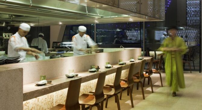 Питание гостей в отеле обеспечивают несколько ресторанов, а также лаундж и бары, в которых подают разнообразные блюда и напитки. Понаблюдать за работой поваров можно через интерактивные стойки в 3 ресторанах, а провести время в спокойно обстановке – в лаунжде с библиотекой и мягкими диванами.