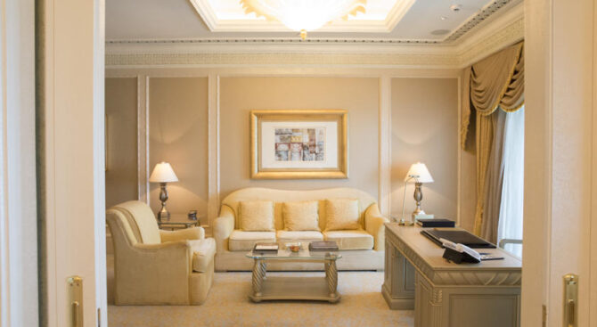 В отеле для гостей предусмотрено боле 140 номеров и около 40 роскошных люксов. Все апартаменты оснащены высокоскоростной связью и электронными системами управления климатом в комнате. Особый комфорт создает современная мягкая и корпусная мебель, звукоизоляция, возможность смотреть спутниковые телеканалы.