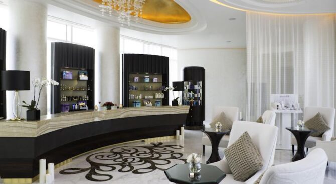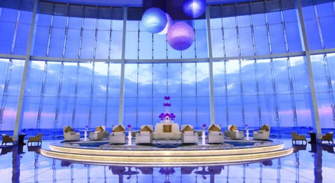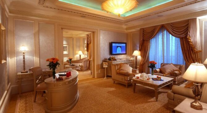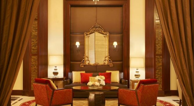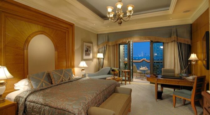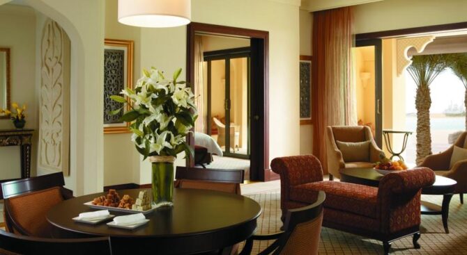 На берегу Персидского залива всего в получасе езды от аэропорта находится один из роскошнейших отелей ОАЭ. Он занимает здание с национальной архитектурой и богатыми интерьерами. Дизайн холлов, лаунджей и номеров выполнен с использованием большого количества мрамора, серебра, золота и замысловатых мозаик в лучших традициях аравийского гостеприимства.