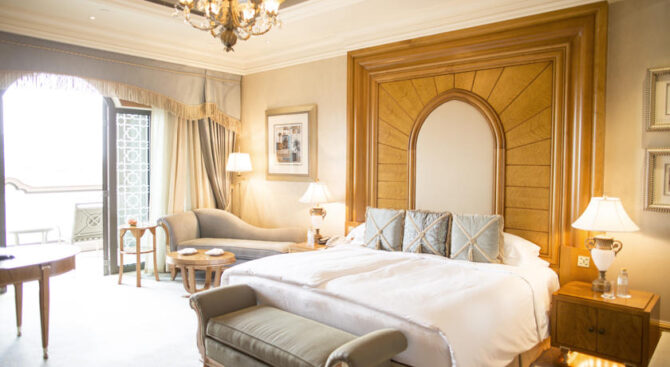 Номера Emirates Palace Hotel оформлены как в стиле модерн, так и в историческом, с богатыми тканями, коврами, балдахинами на кроватях. Санузлы украшены мрамором, имеют 2 раковины, душевую кабинку и ванну. К услугам гостей спутниковые телеканалы. Возможность выпить кофе ранним утром или в течение дня предоставляется, благодаря установленной в комнате кофемашине.