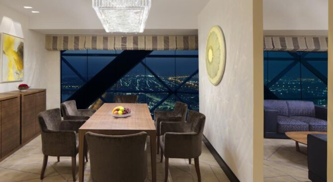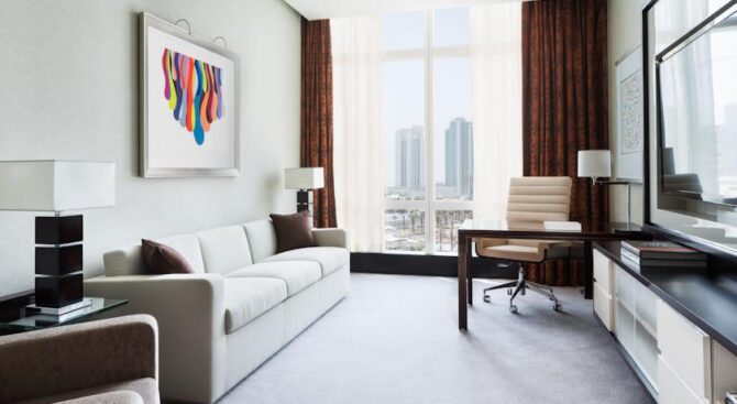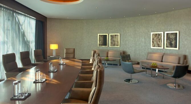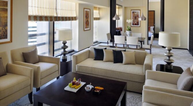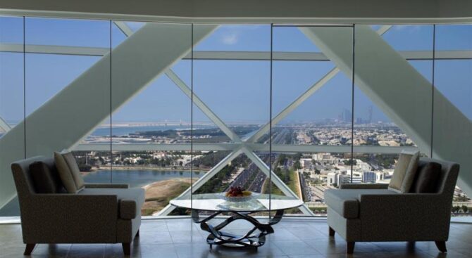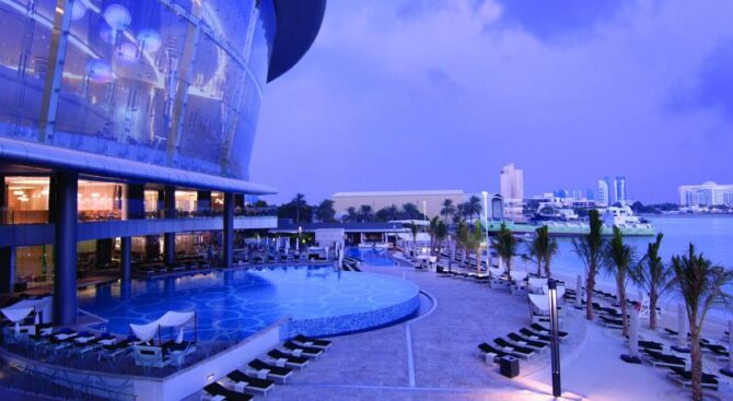 В самом центре столицы ОАЭ находится роскошный отель с большим количеством номеров, спа-центром, ресторанами и собственной территорией на набережной. Для тех, кто выберет этот отель, предоставляются номера с роскошными национальными интерьерами, возможность пользоваться фитнесом и оздоровительным центром с косметическим салоном, игровой зоной.