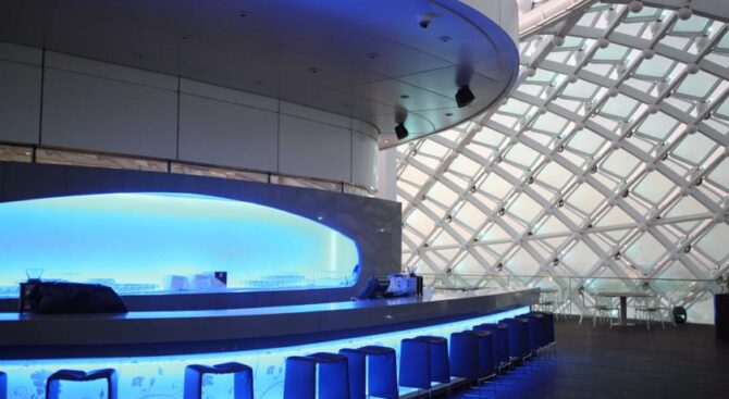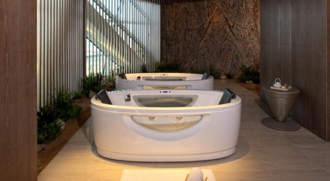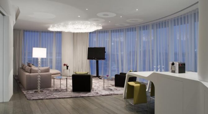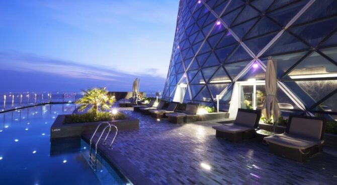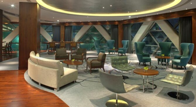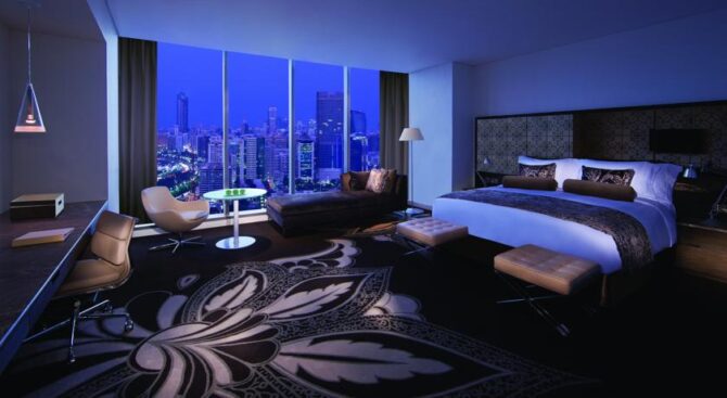 Просторные номера с огромными во всю стену окнами позволяют наблюдать за жизнью города с высоты и любоваться сиянием его огней в ночное время. Такой же возможностью смогут воспользоваться посетители спа-салона. Он находится на 20 этаже, а его расположение позволяет за один раз окинуть взглядом весь городской пейзаж.
