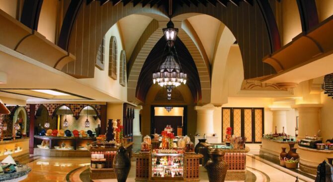 Бесконечный комфорт и незабываемые эмоции дарит своим гостям отель Shangri-La с собственным пляжем и обширной развлекательной инфраструктурой. Все интерьеры, а также фасад самого здания напоминают о восхитительных традициях арабской архитектуры. Холлы и вестибюли украшены мрамором, а в дизайне использованы дорогие ткани и множество зеркал, которые создают ощущения большого пространства.
