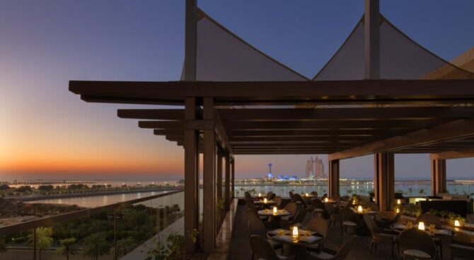 The St. Regis Abu Dhabi располагает несколькими ресторанами и барами, которые находятся как внутри отеля, так и на набережной, откуда открывается вид на залив. Удобно расположившись на мягких диванах, гости могут заказать ужин на свежем воздухе из оригинальных блюд арабской кухни, закусок и деликатесов. Услужливый персонал обязательно предложит кальян.