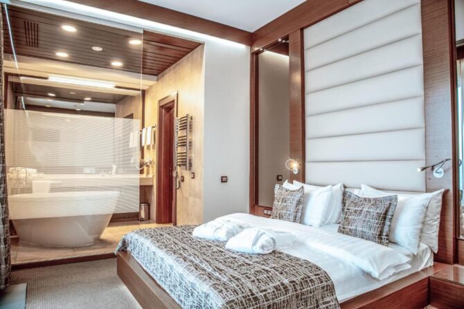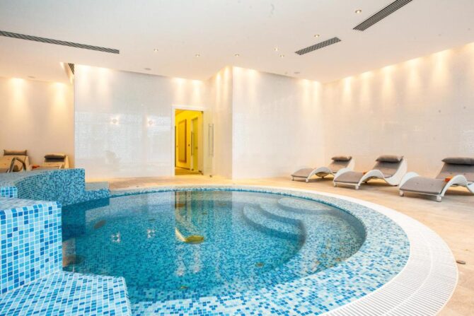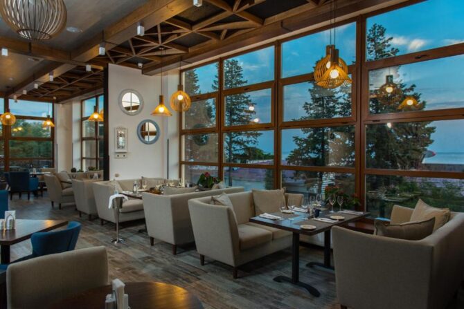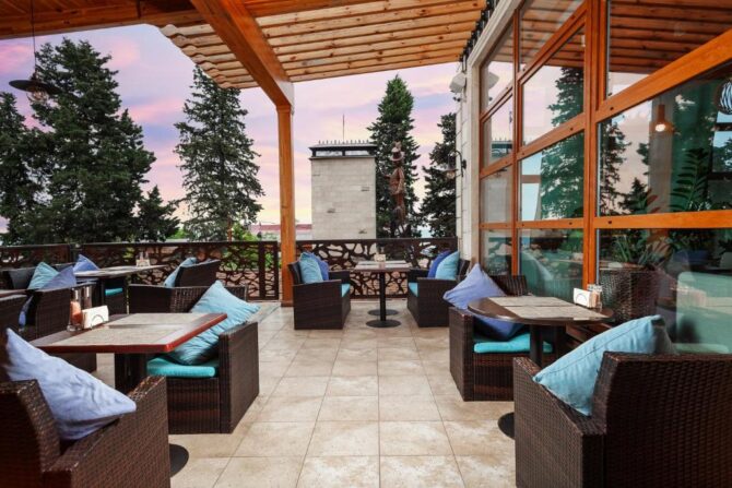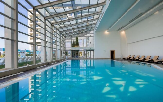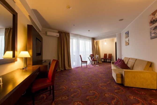 Отдельную строчку рейтинга занимает отель «Имеретинский Премиум». Здесь имеется свой ресторан, в котором пройдет новогодний ужин, обустроен общий лаундж класса Люкс. К услугам гостей – крытый и открытый бассейны (подогреваемые), зал с современными тренажерами, ежедневные вечерние развлечения. СПА и оздоровительный комплекс предлагают специальное предложение по подготовке организма к Новому году. Программа рассчитана на 3 дня и подходит для женщин, мужчин, семейных пар. В нее входят первичный прием врача, массажи, косметология, фито-бочка, детокс-чаи, экспресс-тестирование основных показателей здоровья, кислородные коктейли, аква-зона, экскурсия на Розу хутор. Все номера находятся на клубном этаже, откуда открывается панорамный вид на Адлер, море и горы.