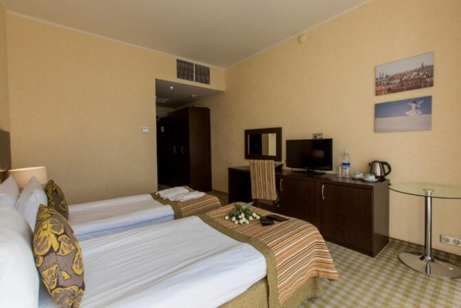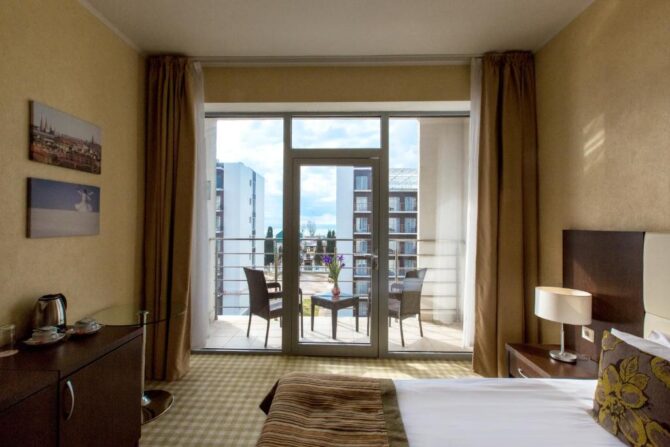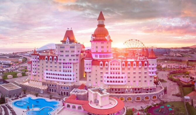 Этот санаторно-курортный комплекс обслуживает гостей в формате «Все включено». Кроме проживания и 3-разового питания в предложение входят: Велнесс-клуб, несколько бассейнов, клиника семейной медицины, тренажерный зал, косметология, детский клуб, игротека, рестораны и бары. Новогодний ужин отправит участников в восточную сказку. Их ждет яркое завораживающее представление с участием экзотических красавиц, летающих чародеев, пиротехнических эффектов. Шеф-повар гарантирует неповторимый вкус и колорит роскошных гастрономических блюд, сладости, пряные коктейли. Вечер будет приятным и очень вкусным. В ресторане Bridge в основном зале накрываются столы для взрослых, в Радужном зале пройдет мини-банкет с детской развлекательной программой для маленьких гостей отеля. Банкетный зал «Русский» открыт для посетителей 14+. В нем также пройдет представление, рассчитанное до полуночи. Сразу после боя курантов начнется праздничный фейерверк.