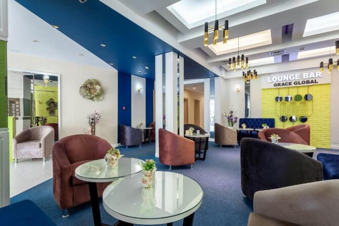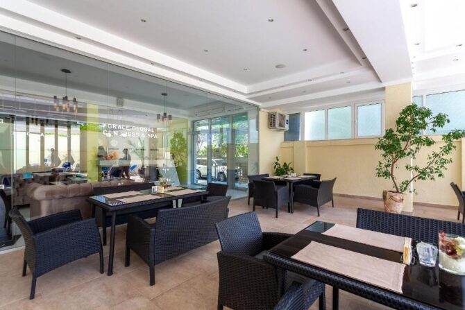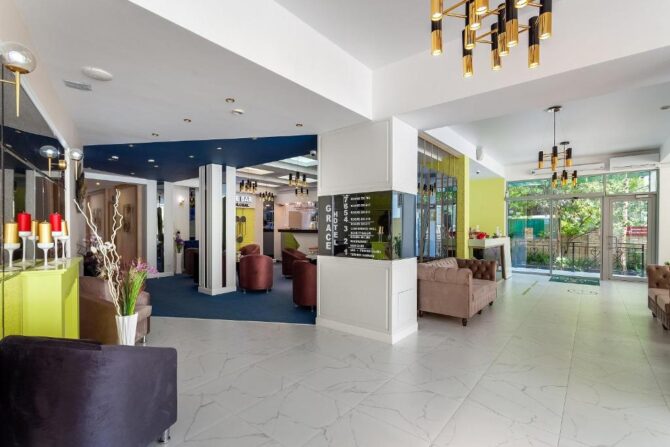 Отели, расположенные в центре Адлера, в зимний период пользуются особой популярностью. Одним из них является Грейс Глобал Конгресс & СПА. Его главная фишка – это удобное место расположения рядом с основными туристическими объектами города. Кроме этого вне зависимости от сезона здесь приемлемые цены и неплохой 4-звездочный сервис. К услугам гостей: номера разной категории, в том числе апартаменты с мини-кухней, доставка еды и напитков по запросу, питание согласно выбранному тарифу, доступ к бассейну и СПА-зоне. В новогоднюю ночь ресторан будет рад накормить любимыми блюдами по системе а-ля карт. Всех детей приедут поздравить Дедушка Мороз со Снегурочкой.