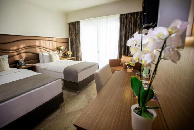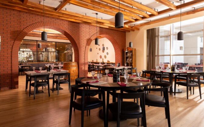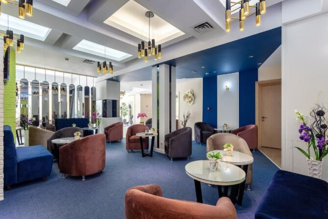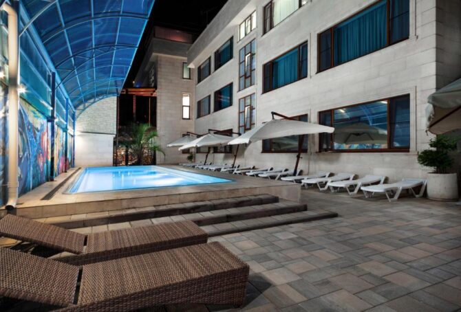 Пятизвездочный отель «Арфа-парк» выделяется на фоне других удачным расположением на Набережной Адлера. Отсюда можно пешком дойти до Олимпийского парка и других туристических объектов Сочи. Новогодняя вечеринка с шоу-программой планируется в ресторане «Чайхона № 1 братьев Васильчуков». На праздничном столе появятся блюда русской, средиземноморской, кавказской и азиатской кухни, паровые кальяны, коктейли по авторской рецептуре. Здесь проходят размеренные развлечения для взрослой публики. После празднования будет возможность привести организм в порядок в СПА-зоне, услуги которой входят в стоимость проживания.