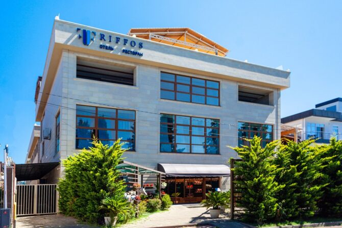 Гостинично-ресторанный 4-звездочный комплекс «Риффос» обеспечивает каждому гостю индивидуальный подход и искреннее гостеприимство. Здесь открыт один из лучших ресторанов курорта. Шеф-повар искусно сочетает кавказскую, средиземноморскую и русскую кухню, готовит гастрономические шедевры. Обслуживание производится сразу по основному, детскому меню, меню завтраков и рум-сервиса, барной карте. Еще одним достоинством отеля является наличие собственного автопарка. Здесь можно в любое время арендовать автомобиль и отправиться в путешествие или на экскурсию. Новогодняя ночь проводится в радость не только взрослым, но и деткам. К ним приходит Дедушка Мороз, чтобы вручить подарок, а также послушать стишок или песенку в исполнении маленького гостя отеля. Взрослые и дети по достоинству оценят лучшую кухню Адлера, а также повеселятся в компании харизматичного ведущего и ди-джея.