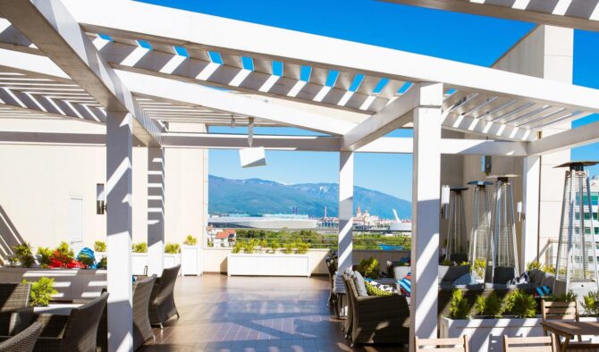 Современный стильный четырехзвездочный отель на первой береговой линии, в нескольких минутах ходьбы от Сочи — парка и олимпийских объектов.