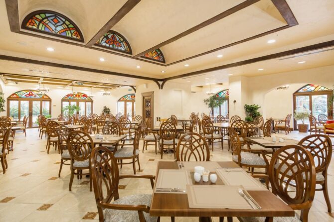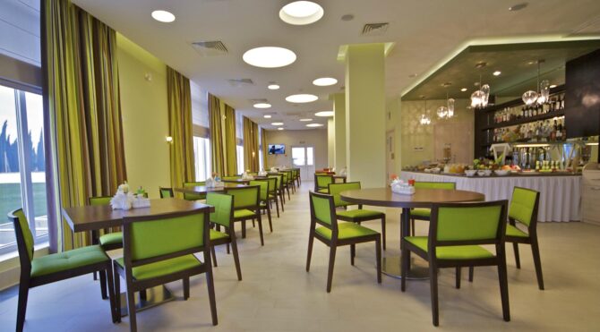 Для маленьких гостей в ресторане имеется адаптированное меню, а досуг будет обеспечен прекрасной анимацией. Гостям предлагается изысканная кухня ресторана и бара, живая музыка. Для любителей спорта и оздоровительных процедур — современный тренажерный зал и спа — центр.