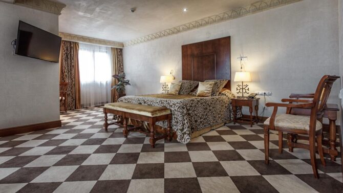 Номерной фонд разнообразен: от одноместных стандартов до трехкомнатных люксов.