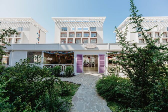 Он идеально подходит для семейного отдыха, зеленая благоустроенная территория имеет открытый бассейн с подогревом, СПА — салон, уютные рестораны и бары.