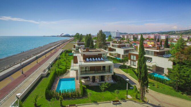 Один из самых известных и больших прибрежных комплексов рядом с Олимпийским парком, объединяющий стандартные номера и апартаменты. Курорт расположился среди красивых гор, на первой береговой линии с песчаным пляжем.