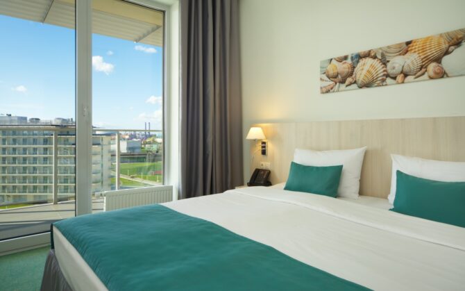 “Плюсы: удобное расположение — и море рядом, и магазины, кафе в шаговой доступности. Современный отель, большие комнаты, высокие потолки, вид на море. Мебель абсолютно новая. Звукоизоляция отличная. Уборка ежедневная и качественная. Еда вкусная, все продумано!”