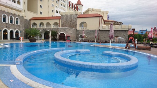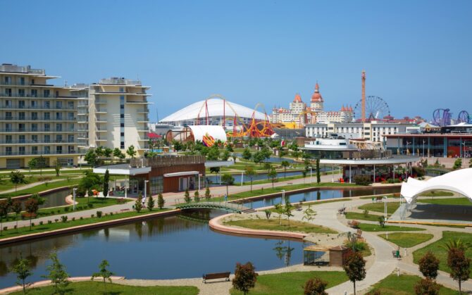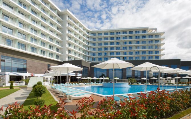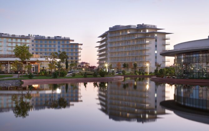 Огромный курортный комплекс, который может быть по праву назван самым большим на юге Черного моря. К услугам отдыхающих — песчаный пляж и парк развлечений для взрослых и детей “Сочи парк“, спортивные площадки и несколько больших бассейнов, массажные услуги и великолепный СПА — центр. Детей развлечет занимательная анимация, и всей семьей вы отдохнете в ресторанах и кафе всех кухонь мира.
