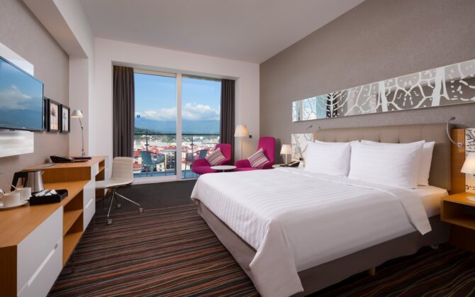 “Понравилось всё. Отличное расположение прямо на набережной, недалеко олимпийские объекты и парк развлечений. Персонал вежливый, номер уютный“