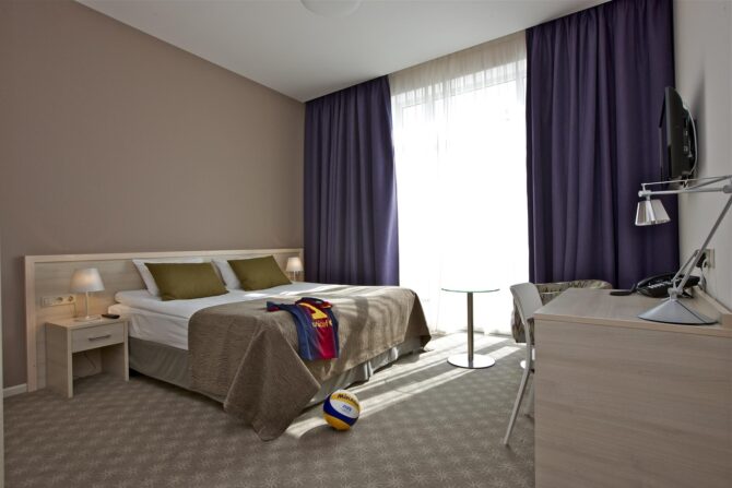 Название гостиницы говорит само за себя, и часто постояльцы предпочитают активный и спортивный отдых. Отсюда вы можете комфортно и быстро добраться до горного курорта Красная поляна или заниматься в высокотехнологичном тренажерном зале отеля. Огромный плавательный бассейн с подогревом подойдет как любителям, так и спортсменам.