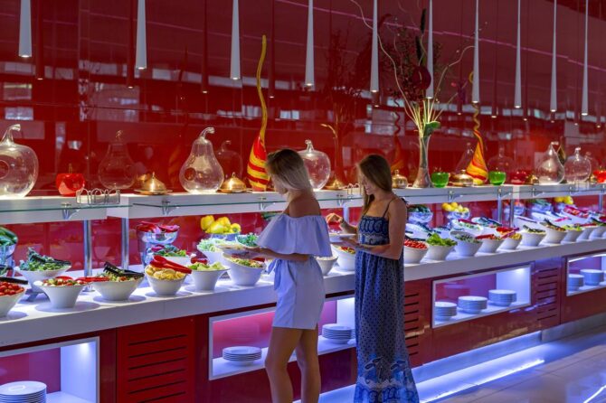 Искусные повара трудятся для вас в главном ресторане, работающем по системе шведского стола, а — ля карт, пляжных барах.