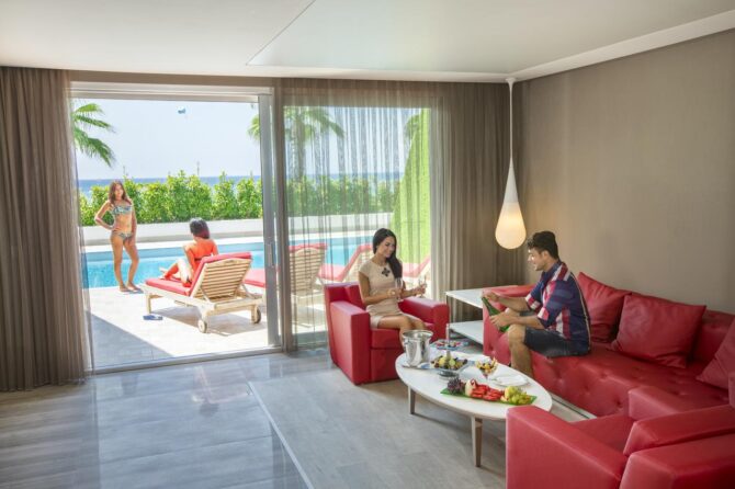Роскошный бутик — отель находится в респектабельном районе Анталии Лара, на первой береговой линии и предлагает своим гостям незабываемый сервис. Номерной фонд премиум — класса от сьютов до президентских люксов и огромных семейных номеров уникален в своей отделке и комфортабельности. Комнаты с элегантными интерьерами имеют мягкое ковровое покрытие и приятную мебели, гостиную с выходом на балкон, откуда открываются потрясающие виды на море.