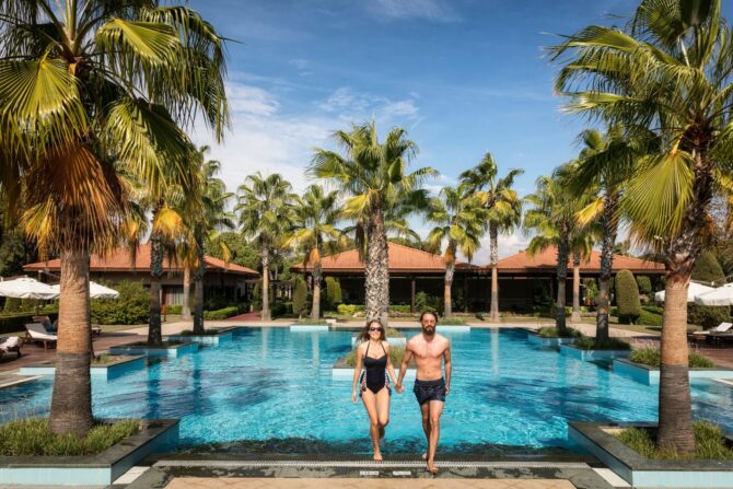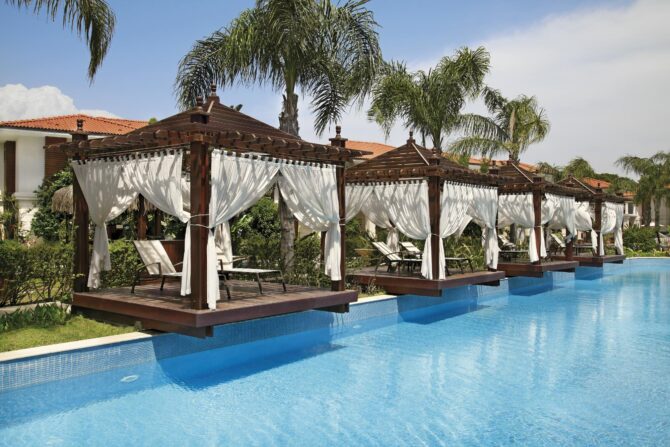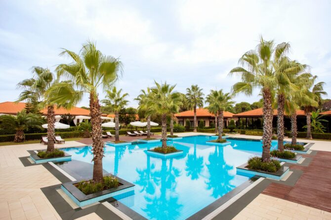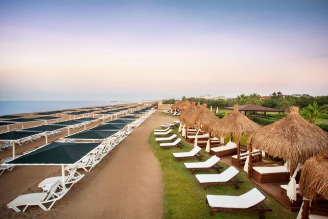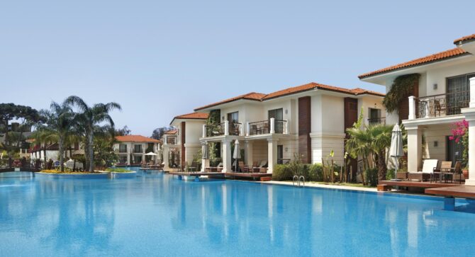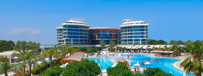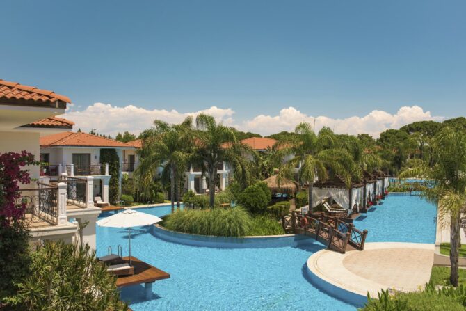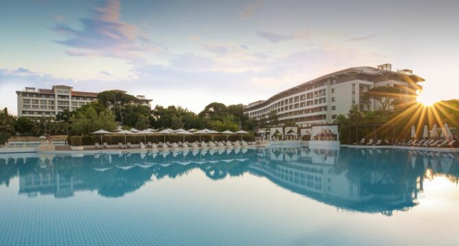 Один из самых больших по территории курортов Белека для роскошного отдыха премиум — класса. Комплекс состоит из основного здания и частных вилл с семейными номерами. Отель занимает территорию около 200 000 кв метров, на первой береговой линии. Гости размещаются в номерах с уникальным интерьером, стильной мебелью и балконом с великолепными видами на море или сад. Люксы и виллы могут иметь свой выход к бассейну.