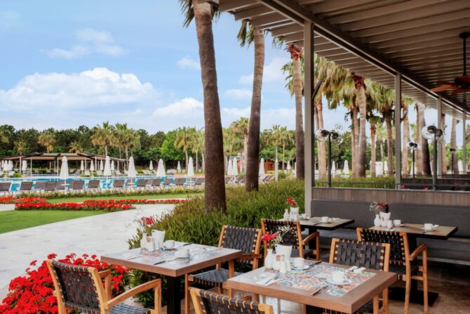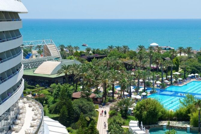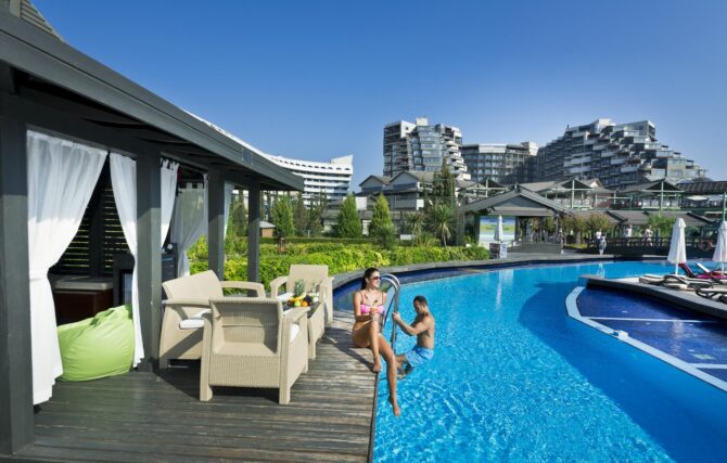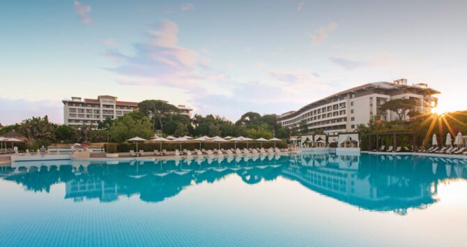 Курорт для полноценного семейного отдыха, расположенный на территории огромного парка, с выходом на собственный пляж и полями для гольфа неподалеку. Один из лучших современных отелей Белека.