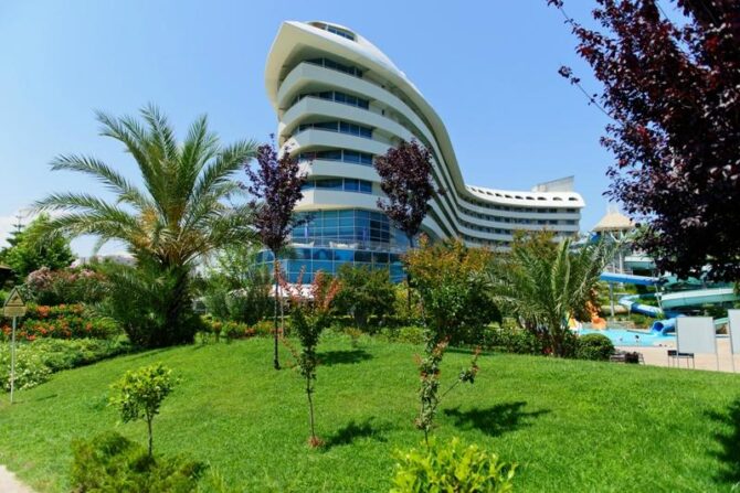 Уникальный по своей архитектуре отель, напоминающий величавый самолет Конкорд, расположился в туристическом месте Лара, с чистейшими пляжами и прекрасной природой. Гости отмечают высокий сервис и гостеприимство персонала, большую обустроенную территорию, двухэтажный спа — центр, оказывающий весь набор услуг по оздоровлению.