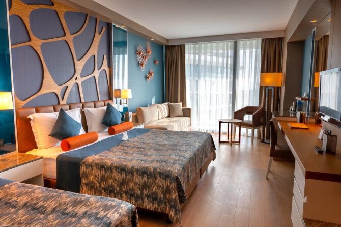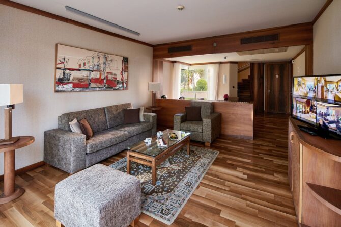 Изысканный комплекс для семейного отдыха и проведения бизнес — встреч ждет своих гостей в уютном местечке Лара, в 20 минутах езды от исторических достопримечательностей Антальи. Номерной фонд состоит из стандартных и семейных комнат, люксов с джакузи. Интерьеры выдержаны в спокойных благородных тонах, турецкая мебель добавляет им колорит. К услугам гостей беспроводной интернет, ТВ, кондиционер, мини — бар, чайный уголок, ежедневная уборка номера.