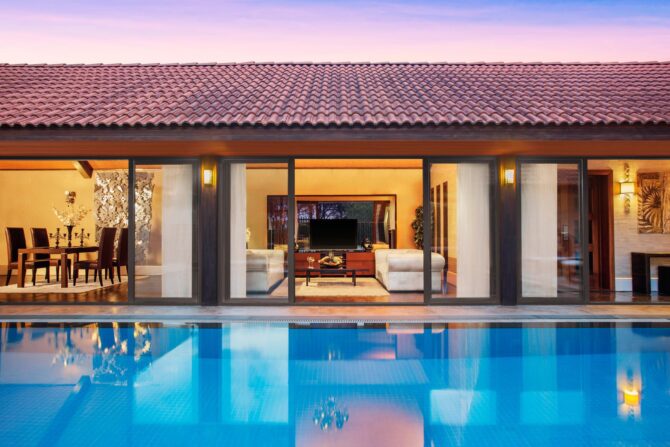 Гости могут разместиться как в стандартном по размерам номере, так и вилле с несколькими комнатами, саунами и гостиными.