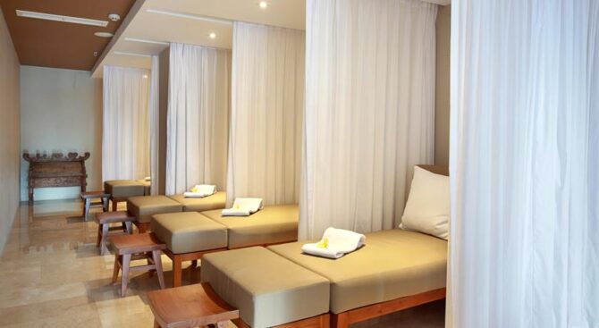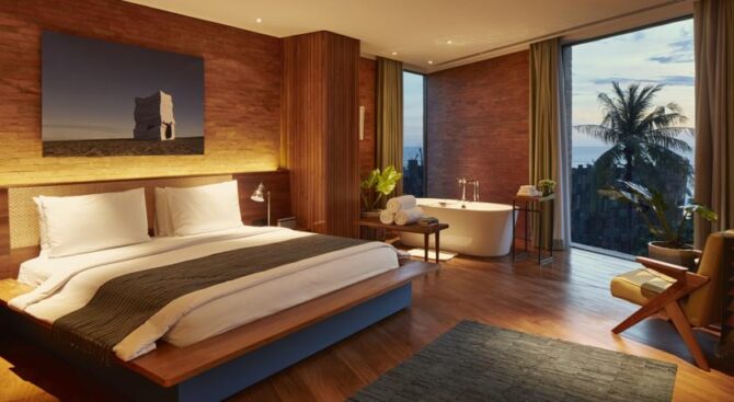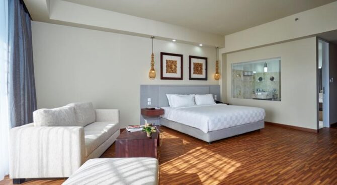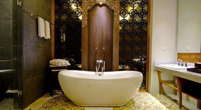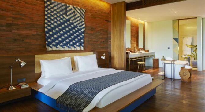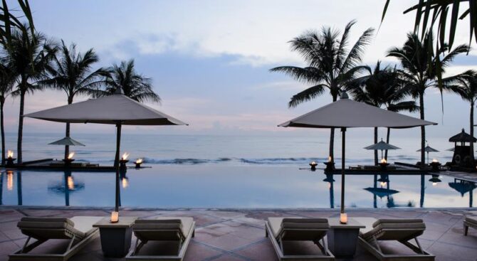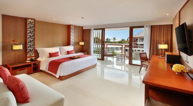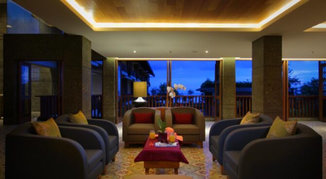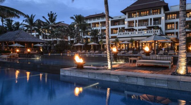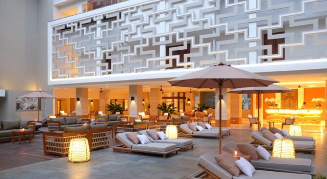Желаете отдохнуть действительно в стоящем отеле по приятной стоимости? К вашему вниманию роскошный комплекс Amarterra Villas Bali Nusa Dua — MGallery Collection — это один из лучших отелей Бали 5 звезд. На территории отеля имеется ресторан, где можно попробовать вкуснейшие блюда от лучших поваров, бассейн, фитнес. Где бы вы ни находились, в любой точке отеля к вашим услугам бесплатный вай-фай. Отсюда идти к пляжу всего лишь 3 минуты.