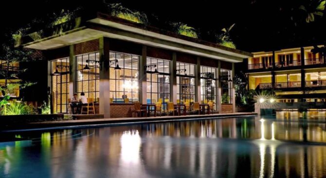 Здесь вы можете плавать в бассейне и не только загорать, но и наслаждаться прекрасным закатом. На территории имеется 5 ресторанов, где угощают очень вкусненьким, поэтому рекомендовано в обязательном порядке сходить в каждый из них. Скучно гостям тут точно не будет, ведь есть спа-салон. Для тех, кто любит «посидеть» в интернете — бесплатный доступ к вай-фай.