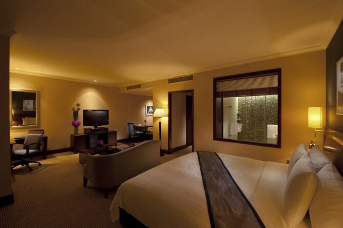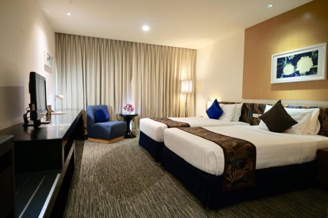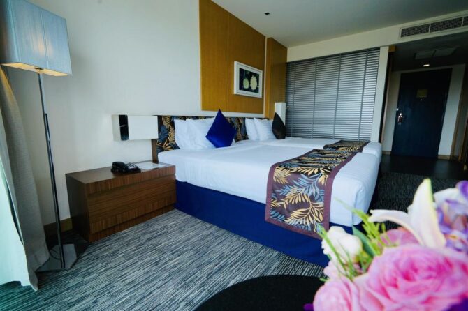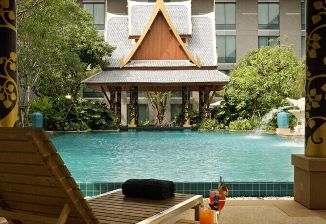 Novotel Bangkok Suvarnabhumi Airport — этот отель предлагает высококачественное обслуживание и удобства. Он находится всего в 10 минутах ходьбы от аэропорта. Гости отеля могут воспользоваться бесплатным трансфером, который курсирует каждые 15 минут, что очень удобно. Помимо этого, вы можете расслабиться в их открытом бассейне или посетить массажный салон.