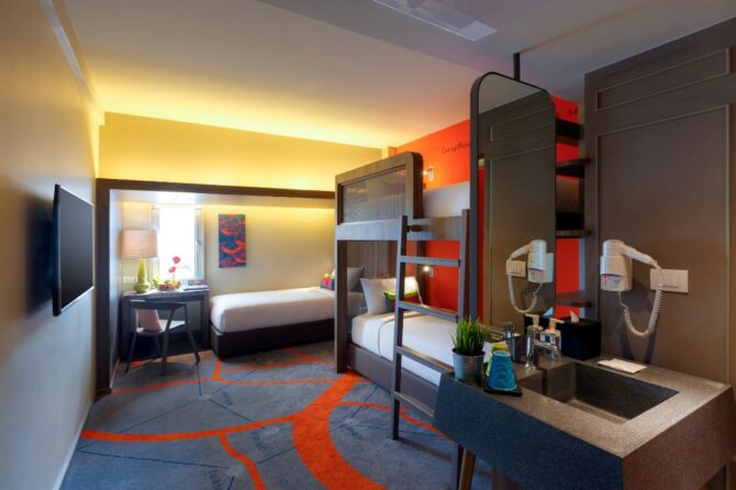 Сubic Bangkok является еще одним из лучших бюджетных мест в Бангкоке для семей, путешествующих в город с ограниченным бюджетом. Этот отель расположен недалеко от торгового центра MBK и ждет вас с общими ванными комнатами, стиральными машинами, сушилкой и отличными ценами. Кроме того, вы можете отдохнуть на террасе на крыше с великолепным видом на город!