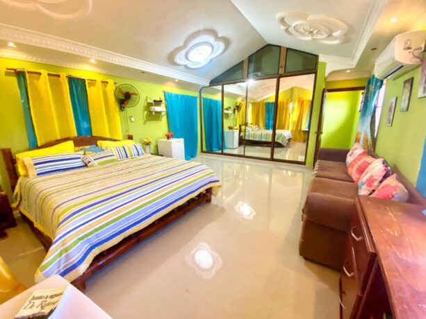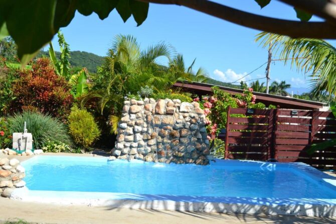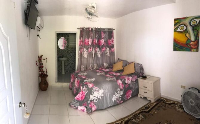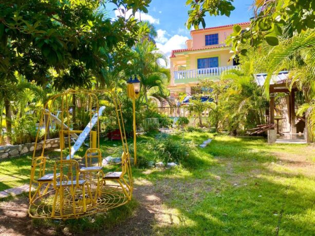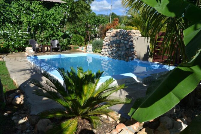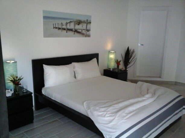 Спокойный отдых подарит удаленная от моря на полтора километра вилла Иванни. К услугам гостей просторный дом площадью 1000 кв. м, бассейн, 5 спален, полностью оборудованная кухня, сад с террасой для загара и детской игровой площадкой. Двухэтажный дом с надстройкой выполнен в традиционном карибском стиле. По задумке владельцев он весь наполнен красками. Добротная деревянная мебель покрыта разноцветными подушками, стены номеров не выкрашены в скучный белый или бежевый цвета, а создают атмосферу вечного праздника благодаря использованию уникальных оттенков.